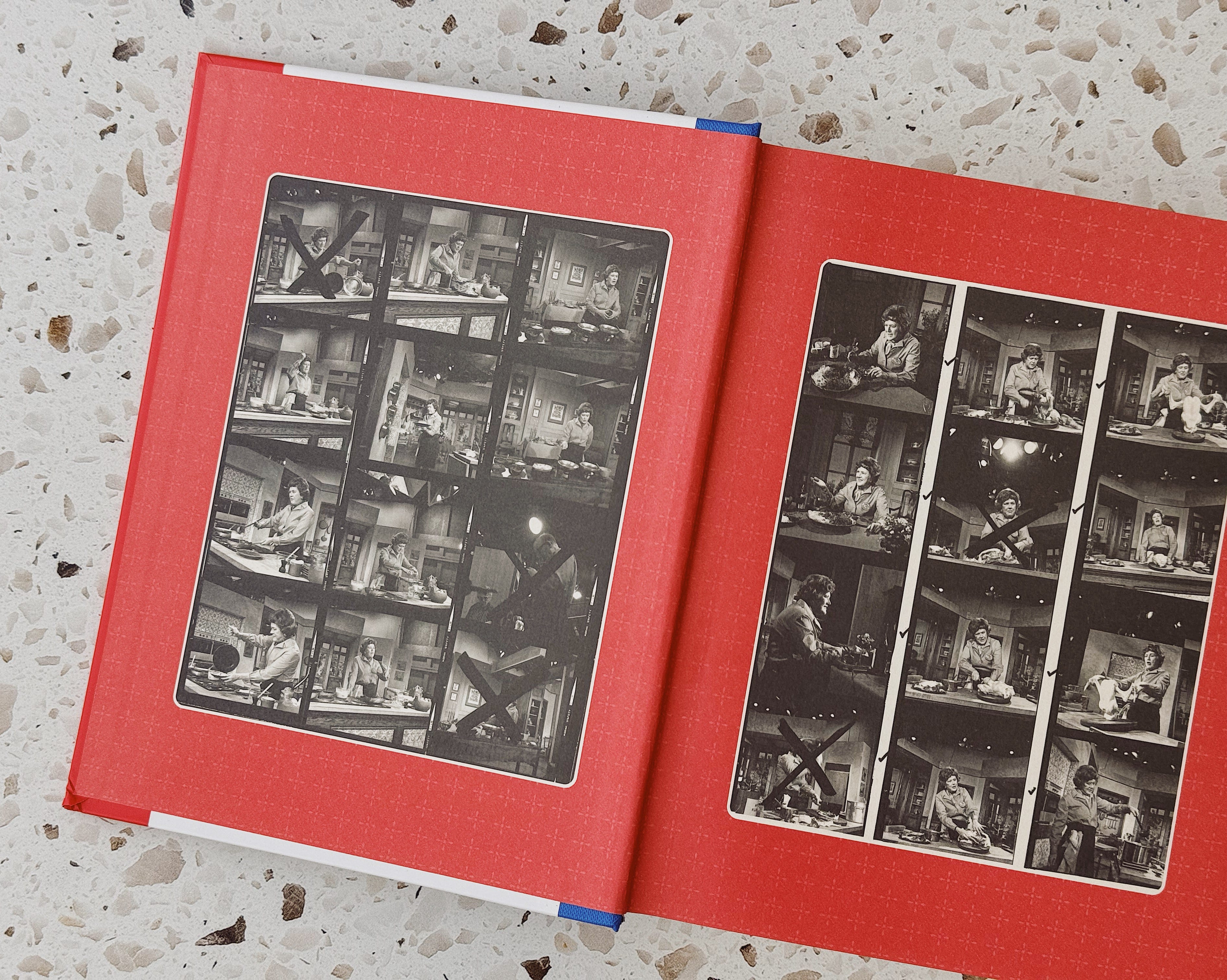 Nestled throughout the book are behind the scenes photos that Paul Child - Julia’s beloved husband and creative other half - took while helping on set of The French Chef. The crew was lean in the early days of making the show and Paul was as instrumental as Julia in making it come to life. From planning out the flow of the show (which they shot straight through in 30 minute full length episodes without stopping!), providing notes on wine pairings, to hanging out of frame to pass Julia dupes or clear dishes, he was instrumental in helping his “Julie” bring her show to life. The end papers are contact sheets of his images, showing his notes and selects, which as a photographer myself I love seeing.